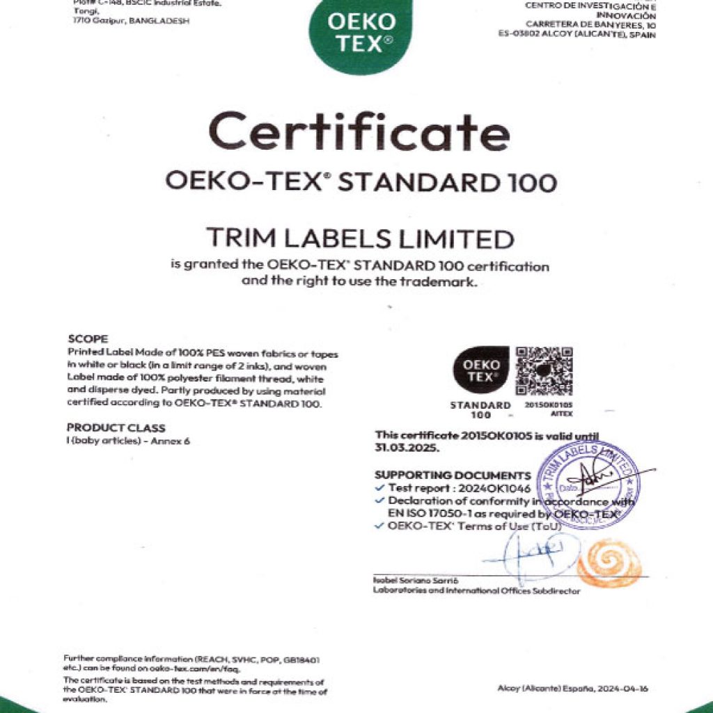 Oeko-Tex is a registered trade mark, representing the product labels and company certifications issued and other services provided by the International Association for Research and Testing in the Field of Textile and Leather Ecology.